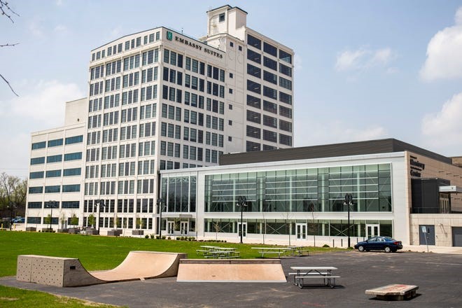 Description: A former factory that once appeared destined for demolition was transformed by Wisconsin-based Gorman & Co. into a four-star hotel and conference center with stunning views of the Rock River and downtown Rockford. The facility opened in the midst of the pandemic in June 2020 and survived. It features 160 two-room suites, a pair of restaurants, a rooftop lounge, an indoor pool, and hot tub, a fitness center, a golf simulator, and more than 20,000 square feet of conference space. Hilton boasts that it is the largest hotel in Rockford or Winnebago County.